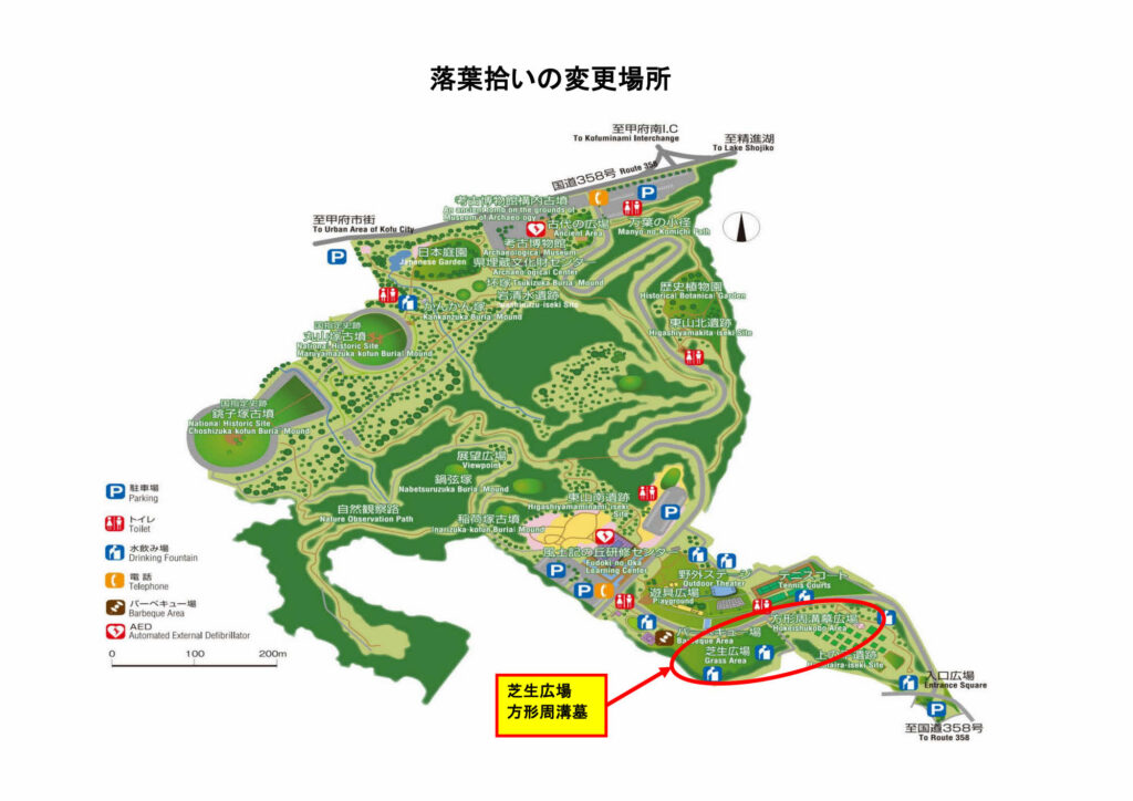 10:20~ 落葉拾い(曽根丘陵公園 芝生広場、方形周溝墓予定)